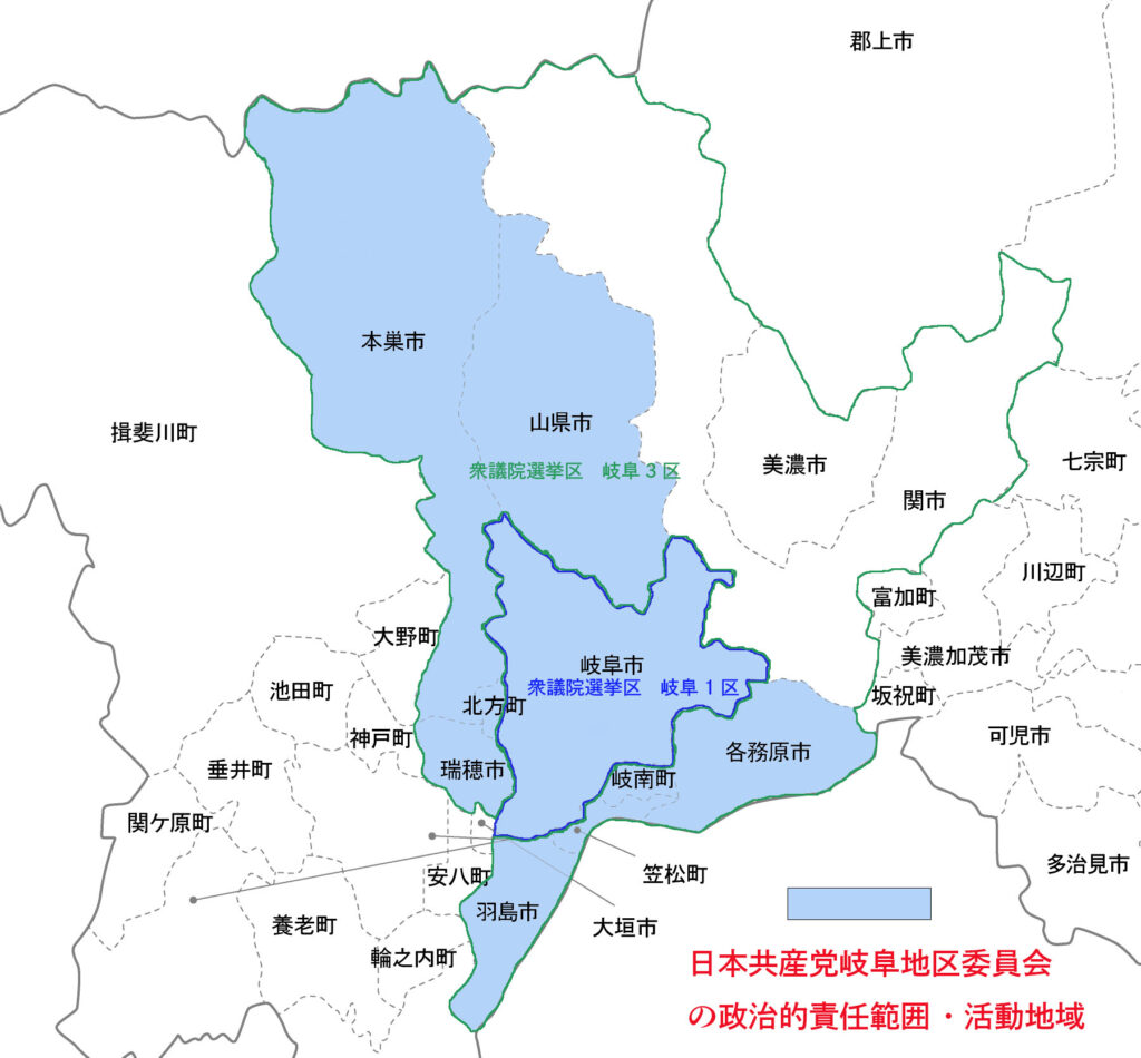 日本共産党岐阜地区委員会の政治的責任範囲と活動地域